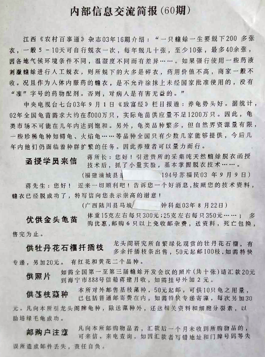 蟾衣内部信息交流简报(60期)